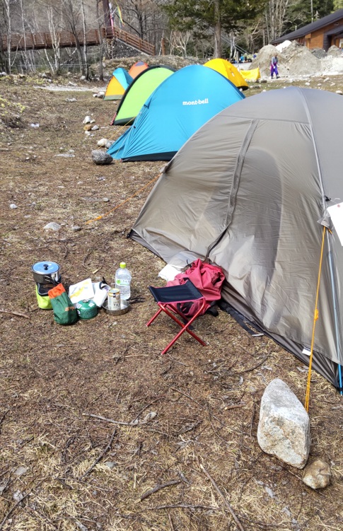 でも、外に出しておいた登山靴が雨でびしょ濡れ。今日は、終日、テント干しと靴干しをしようと決めた。