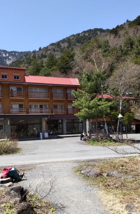 やはり、河童橋の風景は絵になる。焼岳の残雪がきれいだ(蝶ヶ岳からは赤焼けのハゲ山に見えたのに)。